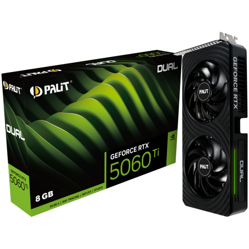 PALIT GeForce RTX 5060 Ti Dual 8GB GDDR7 128 bit, 1x HDMI 2.1b, 3x DP 2.1b, 2 Fan, 1x 8-pin pwr connector, 600W, 262.1 x 126.3 x 40.1 mm, NE7506T019P1-GB2062D