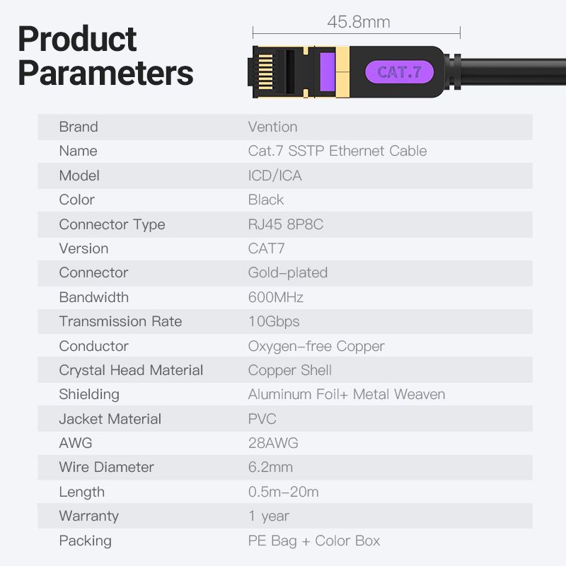 Vention LAN SSTP Cat.7 Patch Cable - 0.5M Black 10Gbps - ICDBD