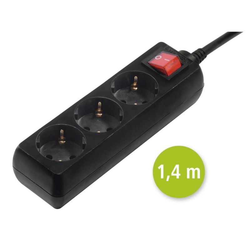 Hama Power Strip, 3-Way, with Switch, 1.4 m, black