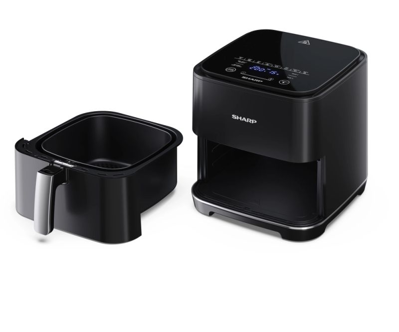 Уред за здравословно готвене Sharp AF-GS552AE-B Air Fryer, 5.5L Frying Basket, 1650 W, Digital Programme Control, 8 Pre-set Programmes, Pre-heat, Reheat, Keep warm, Cook from frozen, Black