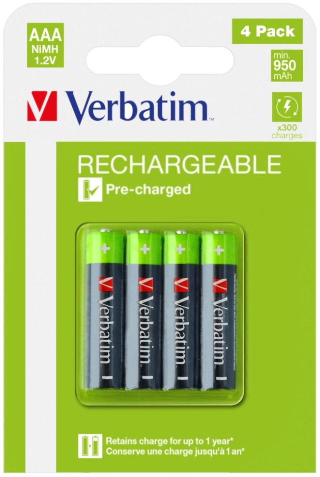 Батерия Verbatim RECHARGEABLE BATTERY AAA 4 PACK / HR03