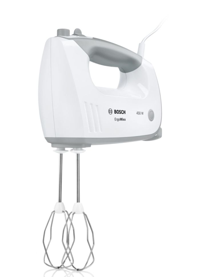 Миксер Bosch MFQ36400, Hand mixer, 450 W, 5 speed settings, additional pulse/turbo setting, white/grey